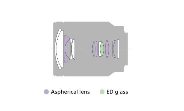 دریچه دیافراگم این لنز هفت تیغه است که بوکه ای دایره ای و زیبا را موجب خواهد شد. حداقل گشودگی دریچه دیافراگم نیز معادل f/22 است. آنچه پیش از هرچیز در ساخت این لنز 430 گرمی با کیفیت جلب توجه می نماید درج نام ZEISS روی بدنه آن است که نشان از تائید طراحی آن توسط این سازنده معتبر دارد. از دیگر برتری های این لنز که حاصل همکاری دو نام معتبر سونی و زایس است، می توان به پوشش ضد بازتاب مختص لنزهای T-Star زایس روی عدسی این لنز نام برد. این لایه ضد انعکاس با مانع شدن از ایجاد پدیده فلر، کنتراست تصویر را در محیطهای روشن بالاتر خواهد برد.