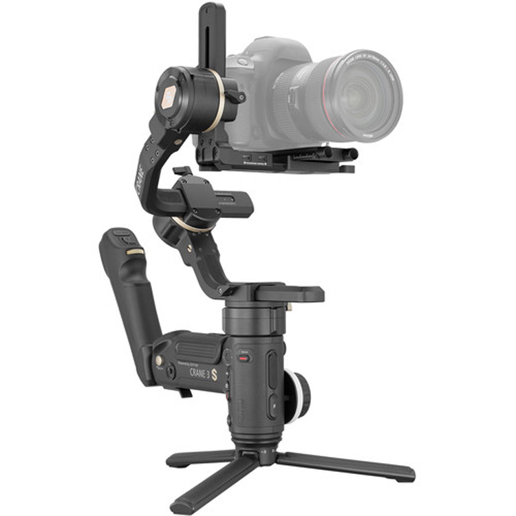 گیمبال دستی Zhiyun-Tech CRANE 3S Handheld Stabilizer محصول جدیدی از شرکت Zhiyun-Tech است. این گیمبال از نسخه قبلی خود پیشرفتهتر است. گیمبال دستی Zhiyun-Tech CRANE 3S Handheld Stabilizer دارای موتورهای باقدرتی است که توانایی تحمل سنگینی دوربینها را از وزن 600 گرم تا وزن 6.49 کیلوگرم دارد. همچنین دارای دسته زاویه داری برای ثبات دوربین است و میتوان از هر دو دست به صورت بهینه استفاده کرد و با نزدیک شدن به سوی سوژه تصاویری بدون لرزش و باکیفیت ضبط کرد. یکی دیگر از مزیتهای این گیمبال این است که میتوان دوربین را روی گیمبال قرار داد و از مکان فیلمبرداری دور شد و ضبط و توقف و شاتر و چرخش دوربین را با استفاده از کنترل از راه دور مخصوص گیمبال انجام داد. این نوع فیلمبرداری بیشتر مناسب ساخت مستندهای حیات وحش است. محور رول گیمبالهای دستی Zhiyun-Tech CRANE 3S Handheld Stabilizer زاویهای 55 درجه دارد و به شما اجازه میدهد که در همه حالات صفحه نمایش دوربین را کاملا واضح مشاهده کنید. برای اینکه بتوان با این گیمبال از طریق گوشی هوشمند موبایل ارتباط برقرار کنید، اپلیکیشنهای مخصوصی متناسب با سیستم عامل ios و اندروید طراحی شده است که از طریق آنها میتوان بر عملکرد گیمبال کنترل داشت. همچنین با استفاده از این اپلیکیشن میتوان ویژگیهایی مانند تنظیمات دوربین، پانورما، فوکوس، تایم لپس و …از طریق گوشی روی دوربین اعمال نمود. یکی دیگر از خصوصیات گیمبال دستی hiyun-Tech CRANE 3S Handheld Stabilizer قفل جداگانهای است که در سیستم قفل در محور گمیبال وجود دارد. این قفل محور را بدون حرکت و محکم در محل خود نگهداری میکند. این ویژگی باعث میشود که بتوانید هر یک از محورهای افقی، عموی و چرخشی گیمبال را به زور جداگانه قفل کنید تا موقعیت تعادل محورها حفظ شود. بنابراین لازم است هنگام استفاده گیمبال hiyun-Tech CRANE 3S Handheld Stabilizer، هر بار آن را مجددا تنظیم نمایید. گیمبال VRANE 3S با طراحی ماژولار، قابلیت اتصال ماژولهایی مانند هولدر گوشی را دارد و دارای پیچ مخصوصی برای تغییر میزان زوم و فوکوس دوربین است. چهار ساعت زمان لازم است که باتری گیمبال دستی CRANE 3S به طور کامل شارژ شود. با باتری این گیمبال دستی میتوانید به مدت 12 ساعت از دستگاه استفاده کنید و چنانچه برای فیلمبرداری به مدت بیشتری نیاز داشتید، با استفاده از اتصال گیمبال به درگاه DC یک باتری دیگر مانند Transmount Power pluse که دارای 6 باتری 18650 است، تا مدت زمان 18 ساعت فیلمبرداری را ادامه دهید. برای اضافه کردن و نصب انواع مختلف لوازم جانبی به گیمبال، نه قسمت مختلف در اطراف آن وجود دارد. در جه چرخش نامحدود این گیمبال به سمت چپ و راست 360 درجه است. در بالای دسته اصلی گیمبال دستی Zhiyun-Tech CRANE 3S Handheld Stabilizer همه کنترلهای لازم در قسمت نوک انگشتها از طریق صفحه نمایش OLED ارائه شده است. در این حالت شما همزمان میتوانید با دست خود هم کنترل دوربین و هم کنترل گیمبال را در اختیار داشته باشید.